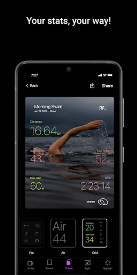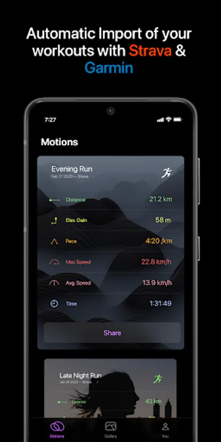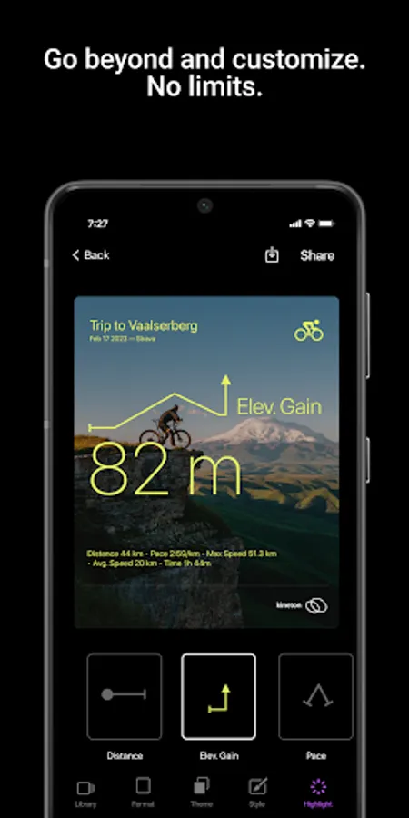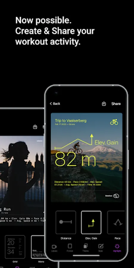 One of the standout features of Kineton is the ability to connect to fitness tracker apps (such as Strava and Garmin) and customize your activity in a visually appealing way. This means that you can add a personal touch to your activity, and make them truly your own. And when you're ready to share your progress, you can easily post your customized workouts on social media, along with hashtags and other tags to help you connect with other fitness enthusiasts around the world. Ultimately, your workout activities will be visually appealing and engaging.