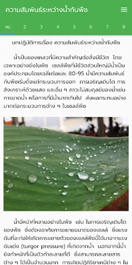 Virtual laboratory about plant-water relations. Contains a brief overview about plant-water relations, water movement and water potential determination. Includes 4 virtual laboratories to demonstrate the concept of water potential and water movement in plants.