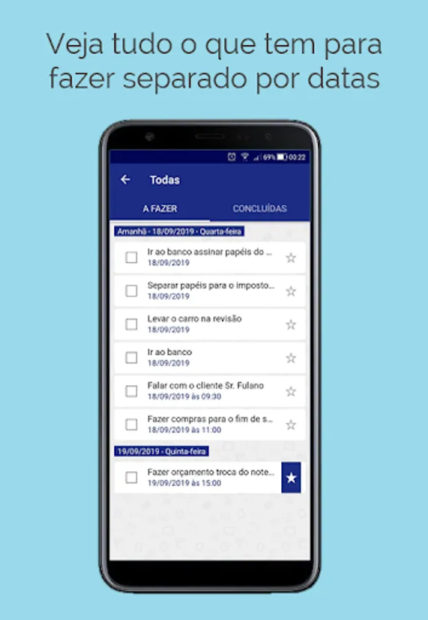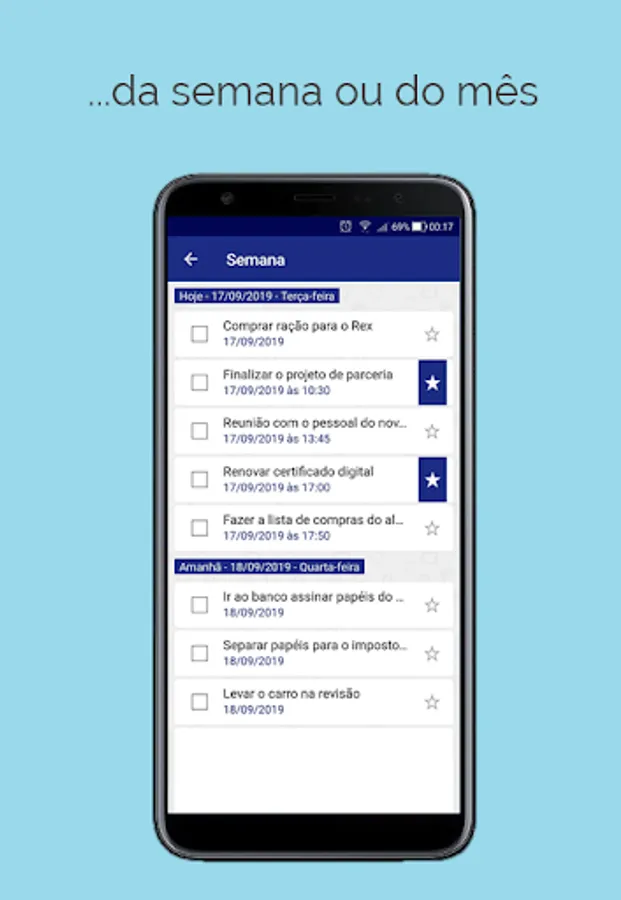 Want to see all you have to do in the week? No problem, list all your tasks with one click.