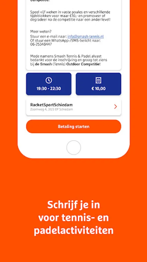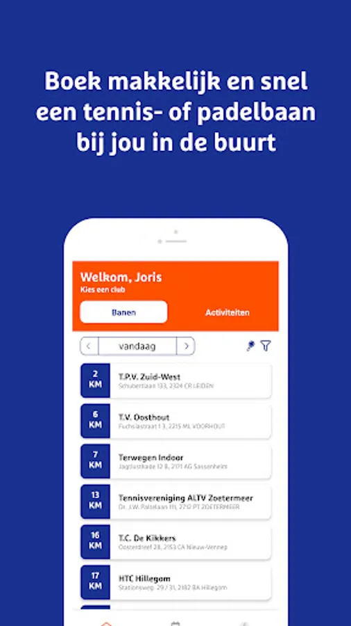 Do you want to book a tennis or padel court, but you are not a member of a club? Or are you on holiday near a club, but not a member there and still want to play? Then download the KNLTB Meet & Play App! With this you can easily and quickly book a tennis or padel court or tennis or padel activity in your area. The number of accommodations that participate is growing by the day!