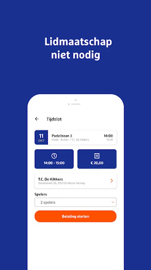 Have you previously booked a court via Padelboeker.nl or Tennisboeker.nl? You do not have to register again. Log in with your email address and password and you can book from that moment on from the app.