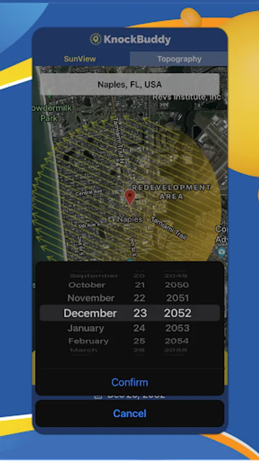 Professional sales tool for SolarViewing the direction of the Sun on any Day, Month, Year and time giving you the competitive edge to display current and future sun exposure.