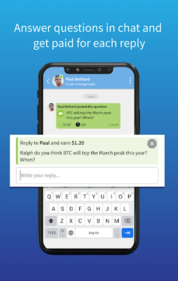 Earn: Set your own price for your knowledge, and receive requests to explain complex Bitcoin-related questions from around the world at the time and method you prefer