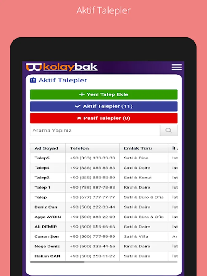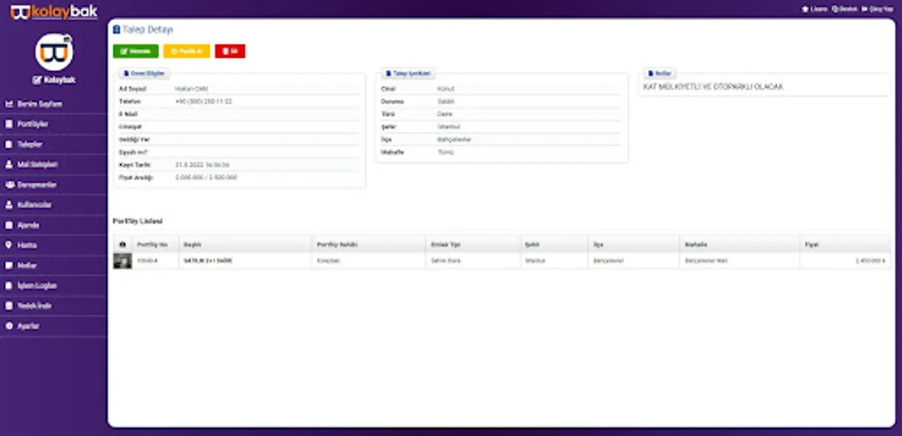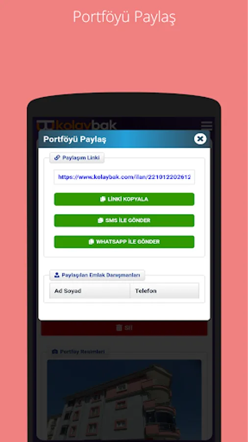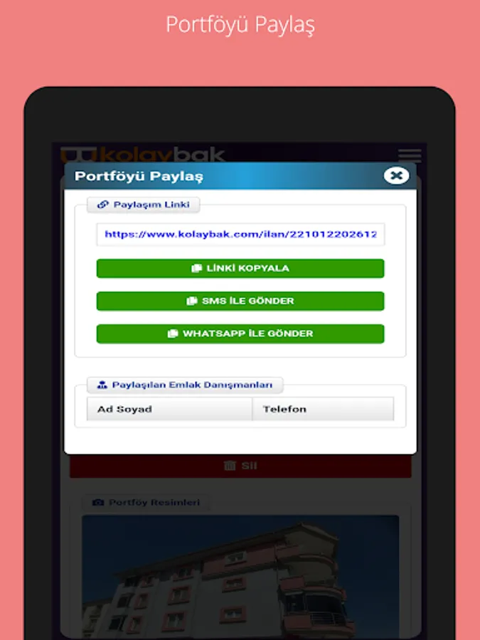 Kolaybak also allows you to share portfolios with your customers and colleagues whenever you want. Our application is designed in such a way that it will never share the information (owner and contact information, etc.) other than the general information in the Portfolio with the other party, both for your trade secrets and the privacy of your customers.