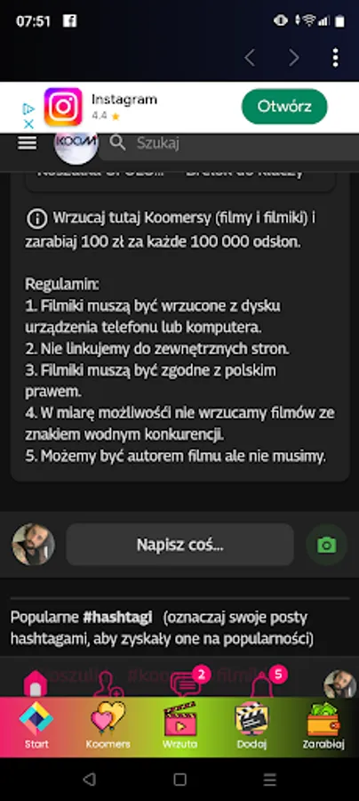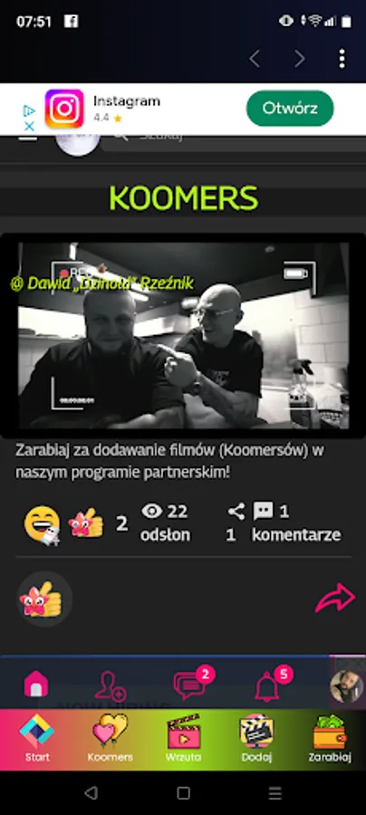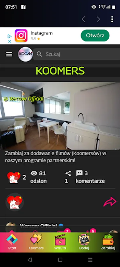 In the Koomers app, you will only see the best movies and videos and you can earn money by uploading them. Great entertainment at your fingertips. Download now! Koomers also has many functions to match the best social media in the world. Once you install the Koomers application, you won't be able to tear yourself away, because there are really a lot of functions to test and then to work on. Install our application and you won't regret it!