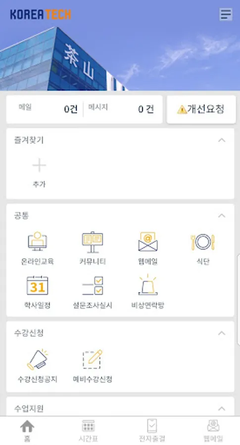 KOREATECH (Korea Tech) app is a Korea University of Technology and Education application designed for the convenient school life of faculty and students.