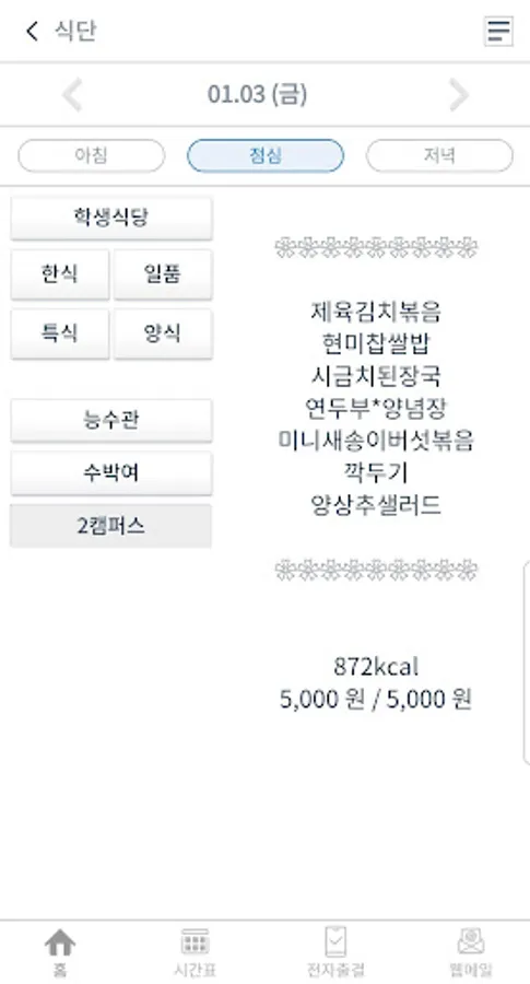 -Diet: Check the breakfast/lunch/dinner menu in the cafeteria