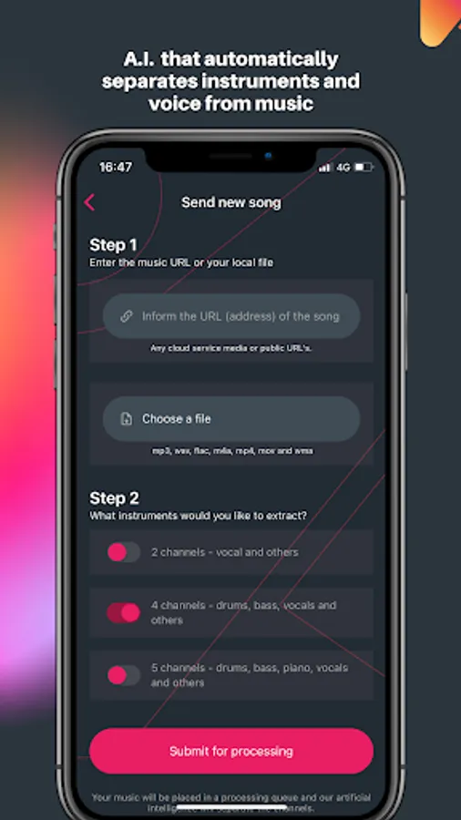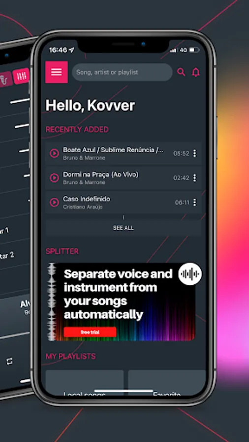This is the only app that offers splitting the channels used in the tracks in real time and however you want. Let your backing track, playalong, tracks, multitrack channels and even your karaoke your way. Download the app and see how awesome it can be to play with a band or artist.