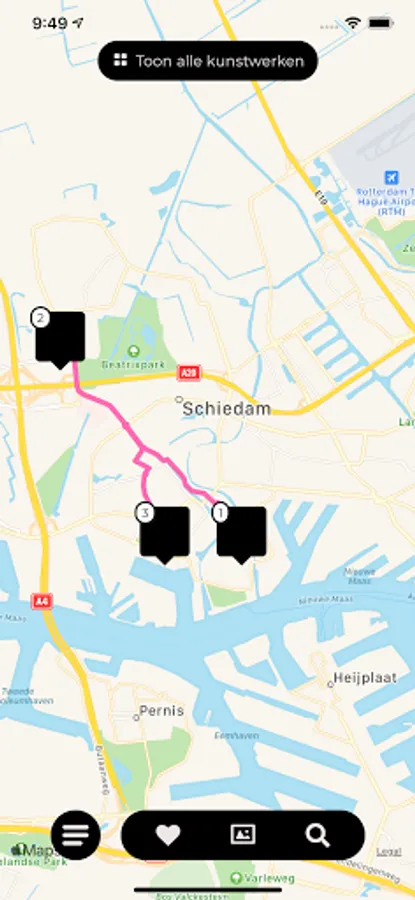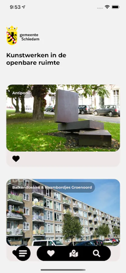 In order to allow residents and visitors to fully enjoy the beautiful collection, the idea was conceived to make an attractive app. You can use that app autonomously, but you will also be referred to it if you 'accidentally' come across a work. Then the app indicates that there are more works in the immediate vicinity to visit. This creates a kind of sculpture route through the northern edge of Schiedam.