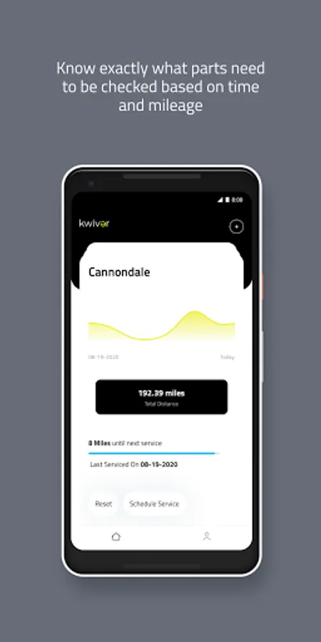 Kwiver tracks your mileage, notifies you when service is due, and offers concierge scheduling at your local bike shop. Your bike will thank you and so will your wallet.