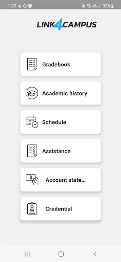 This app allows students from institutions that are using Link4Campus to access their academic information such as: report card, absences, schedule, account status and academic history. They can also see your student ID and much more.
