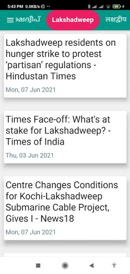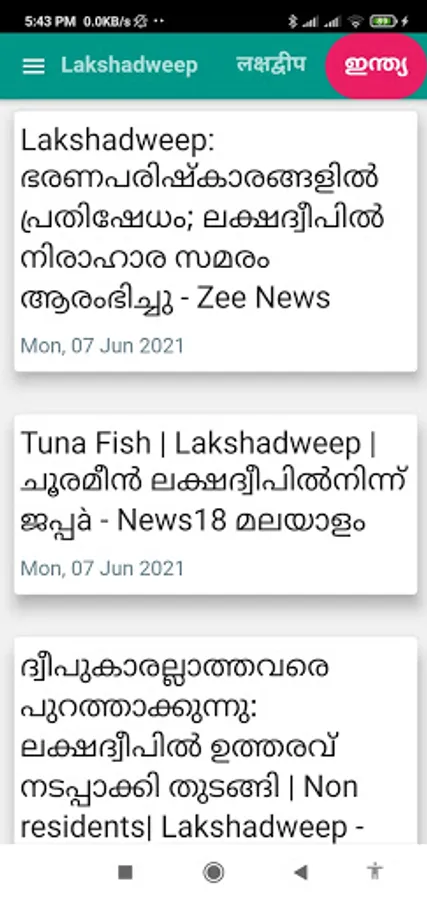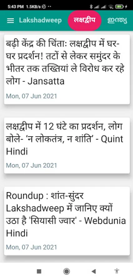 It will show you News from Lakshadweep in Hindi English & Malayalam.