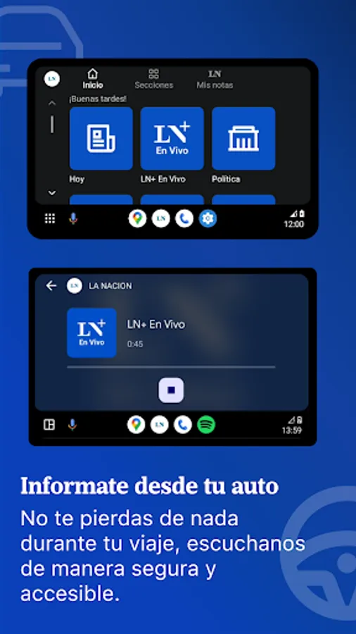 - Listen to the news by interacting with the app from your car screen, thanks to compatibility with Android Auto.