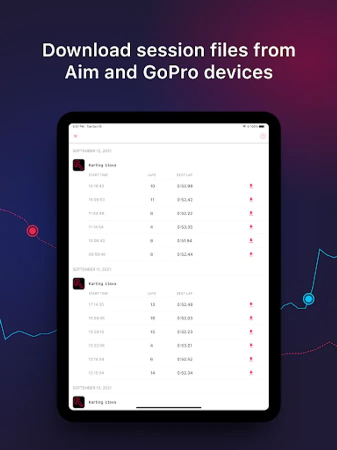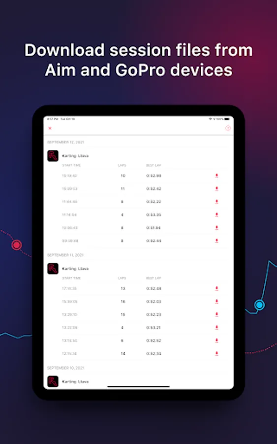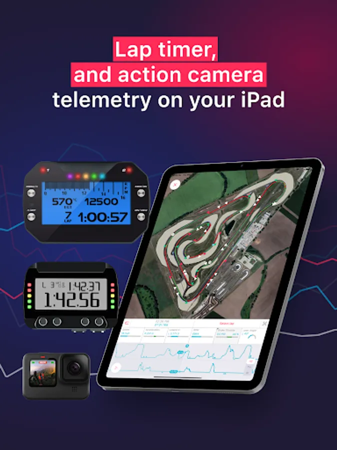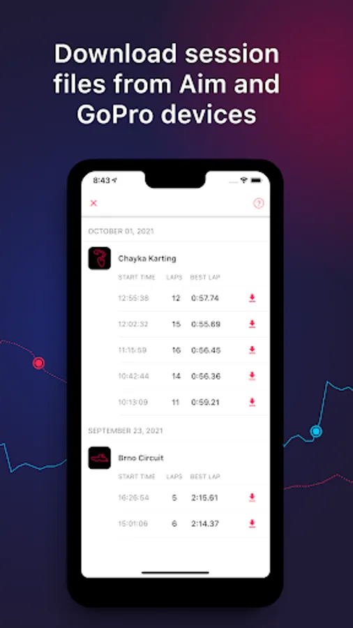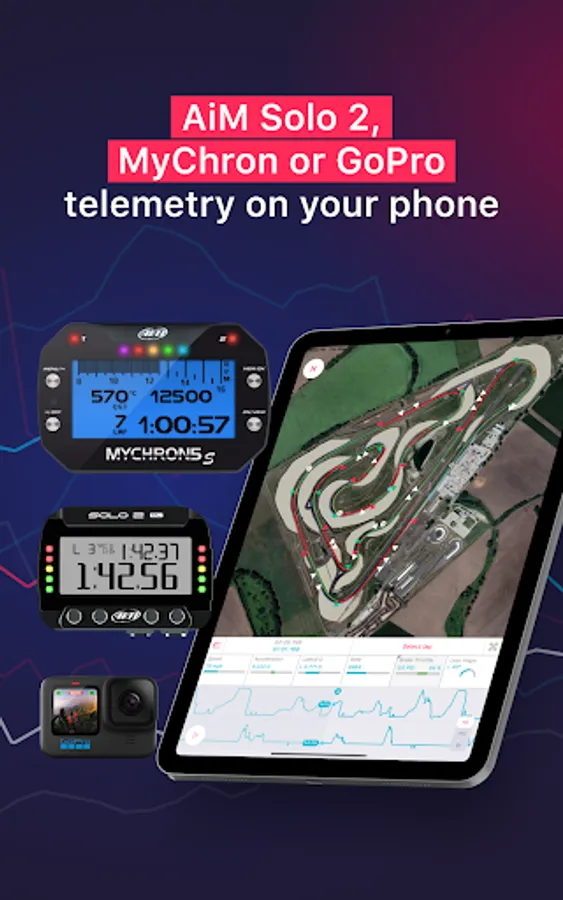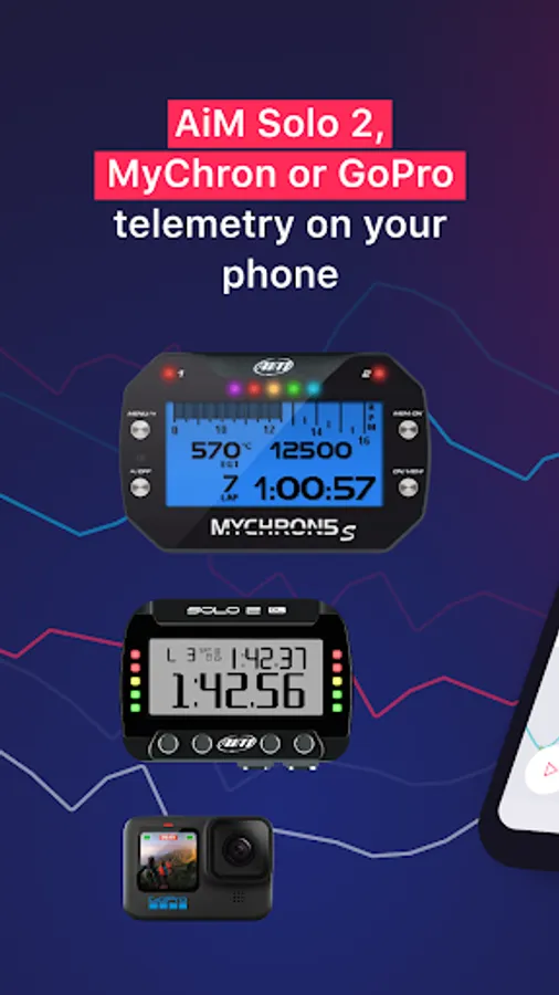 Get the most out of your Aim Solo 2, MyChron 5 or GPS enabled GoPro at a race track by connecting it to your phone and downloading sessions. LapSnap is the first mobile app to connect your Aim device directly to your phone, without extra equipment. Just connect, download and analyze.