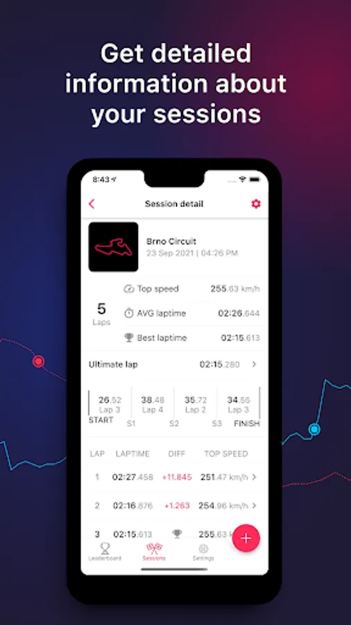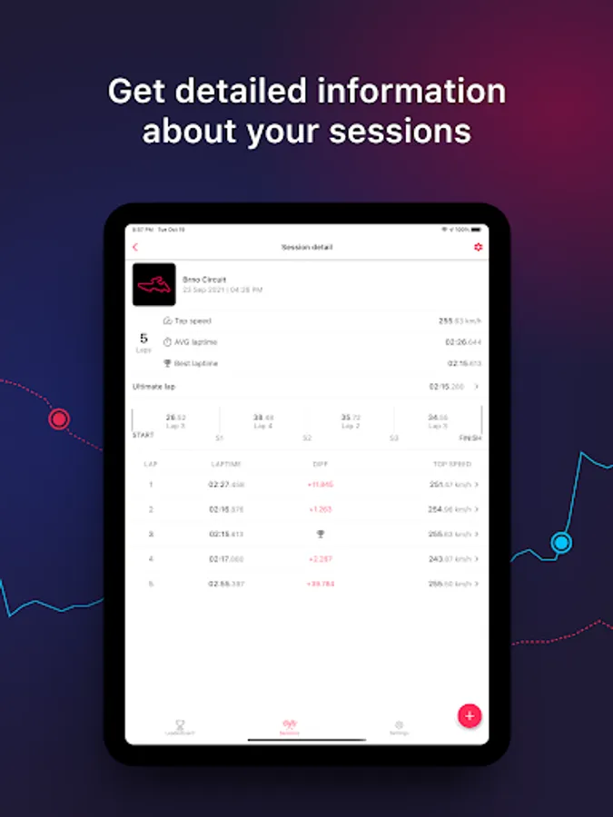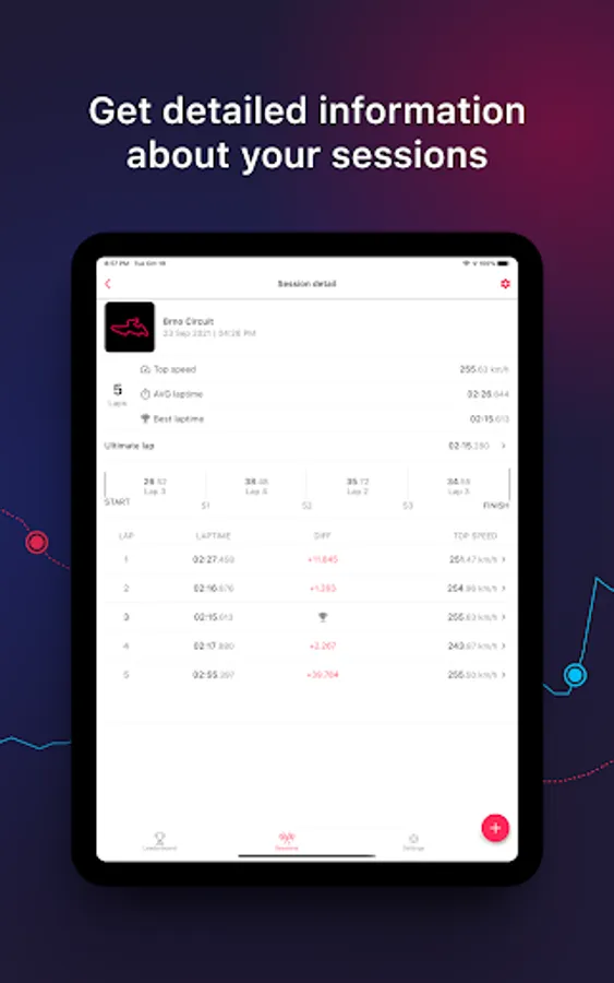 - Easily access each session and each lap. This way you can always refer back to a particular lap.