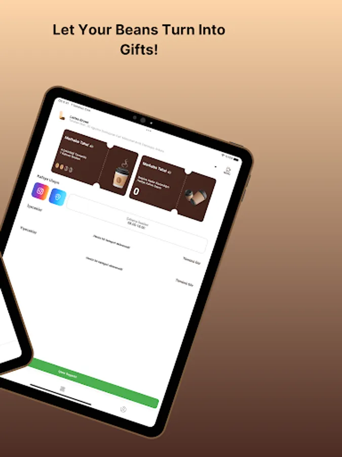 So, would we be too assertive if we say that it is also possible to drink a gift of coffee? Your gift beans accumulate as you shop and turn into coffee from your favorite cafe. It also offers a user-friendly interface, convenient navigation between the application, night mode, and 2 different language options (TR-EN).