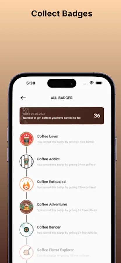 - As you use your gifts, you can earn badges and prove to your friends how much you love coffee
