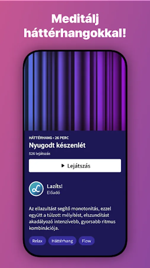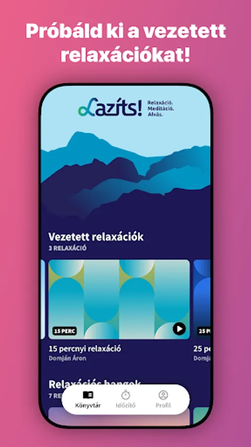 Használd a “Lazíts!” app ingyenes funkcióit és hanganyagait! A könyvtár teljes tartalmához, az összes háttérhanghoz való hozzáféréshez fizess elő! Próbáld ki az alkalmazás teljes tartalmát ingyenesen egy hónapig!