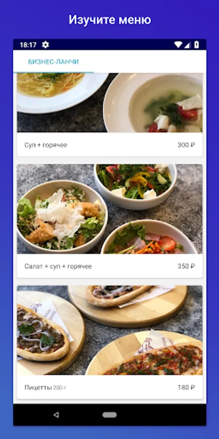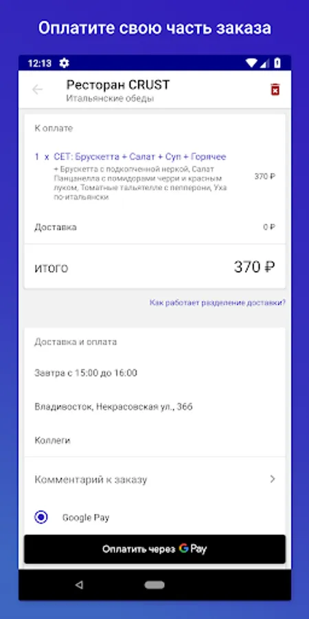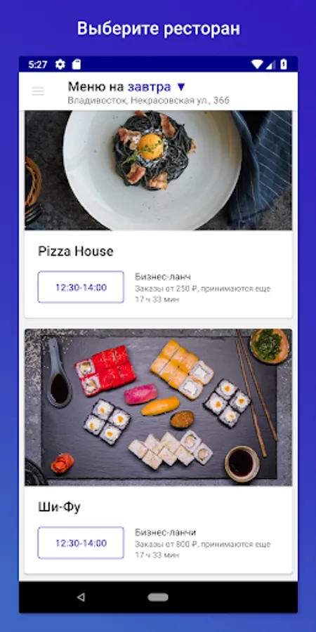 2. Find a suitable restaurant offer: menu, delivery hours, order acceptance time.