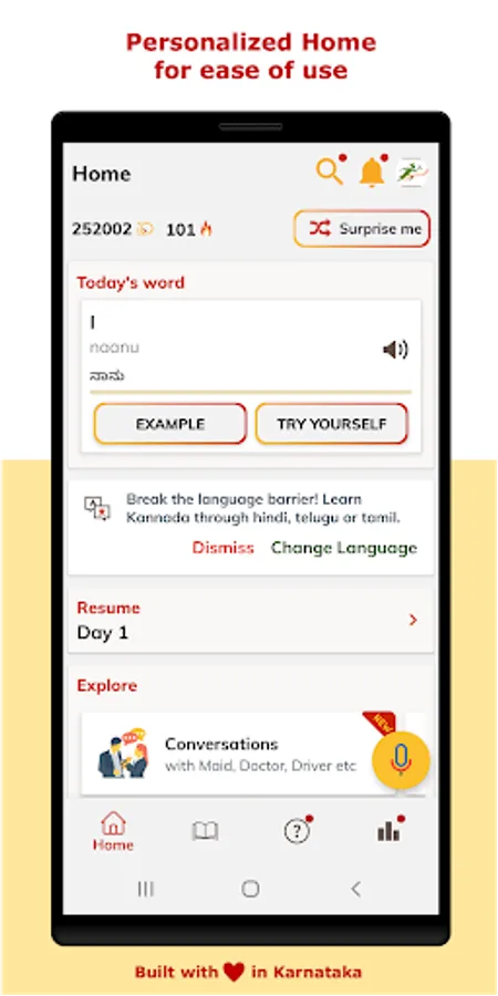 Learn Kannada SmartApp is the world's number 1 Kannada teaching app and has been developed exclusively for those who want to learn the Kannada language on the go. The app comes with a 10 days course to learn basic spoken Kannada and a Flexi course to learn at your own pace. The app also has video tutorials with theory for Grammar. The assistant in the app helps you find translation with an audio message in just a click. The app validates your pronunciation and helps you mark a word learnt.