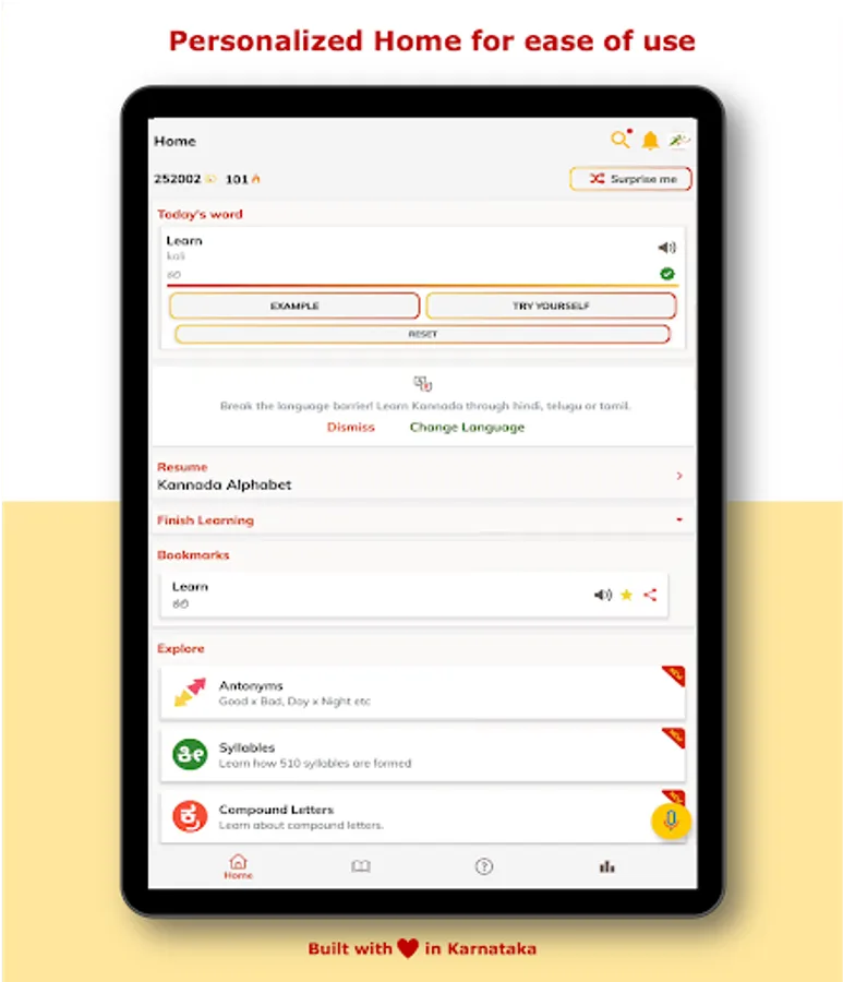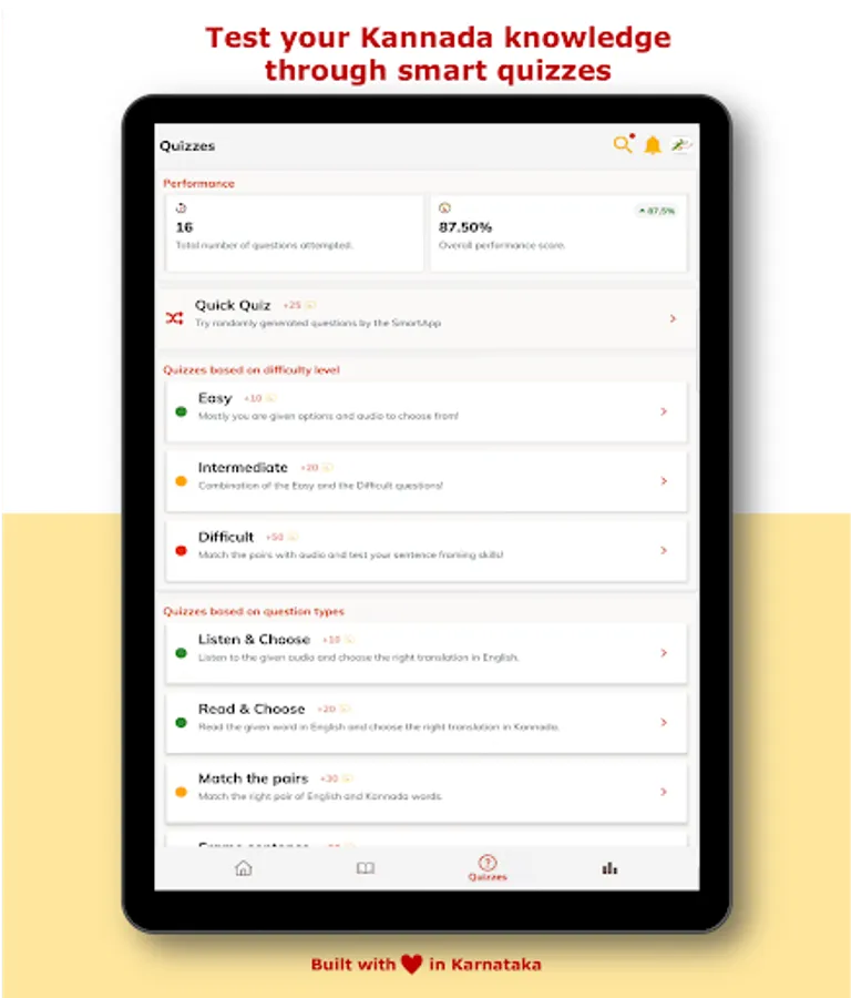 The app has been built by HithAM Creations a team of just us two developers Varun and Rohith. We developed this app with help of one more friend Pooja HN for voice, all are working in Bengaluru, Karnataka. We always wanted to help interested non-Kannadigas learn Kannada and we were searching for a way to help a larger audience. That's when we started developing this app. We are still working on adding new features to the app which should make learning more easier.