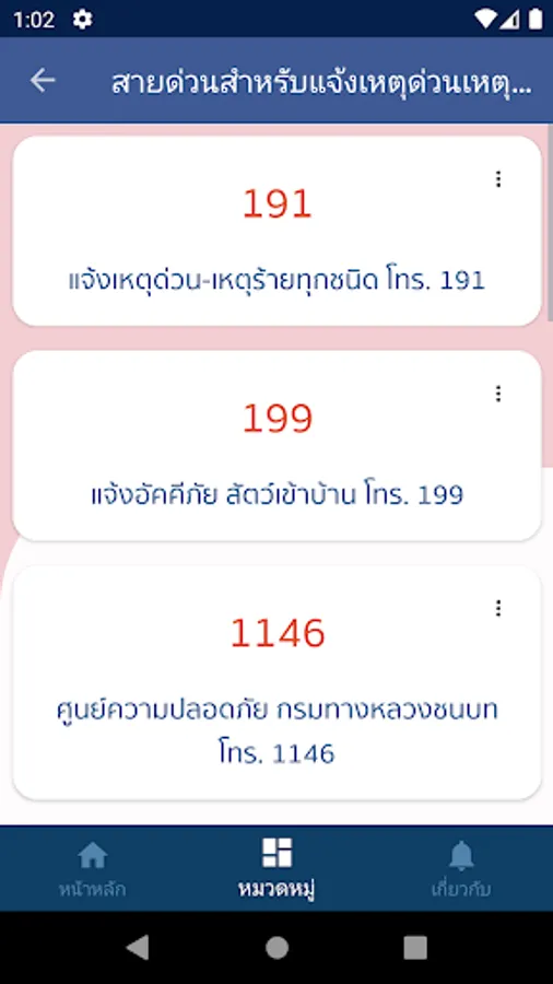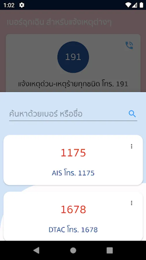 An app for finding emergency calls in Thailand Divided into many categories Easy to use and convenient Let you see the details And find Thai emergency phone numbers Whether it is an urgent, disaster or bank number It also has a feature Follow the country news Read the news too.