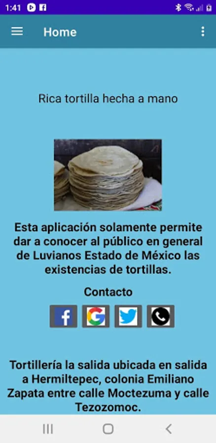 This application was developed to publicize the availability of the tortilla in the tortillería
