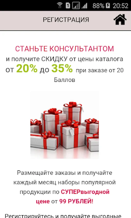 With this application you can see the catalog, learn how to register, start a business, etc.