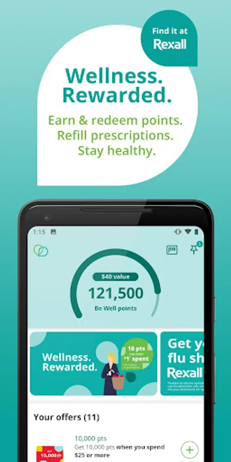 Earn reward points at Rexall and Well.ca. 25,000 reward points = $10 redeemable value