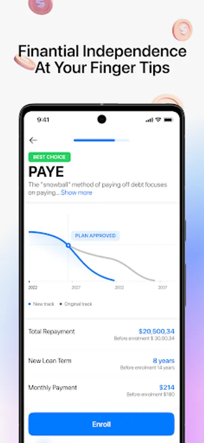 • Decide payment amounts and frequency with Avalanche and Snowball plans.