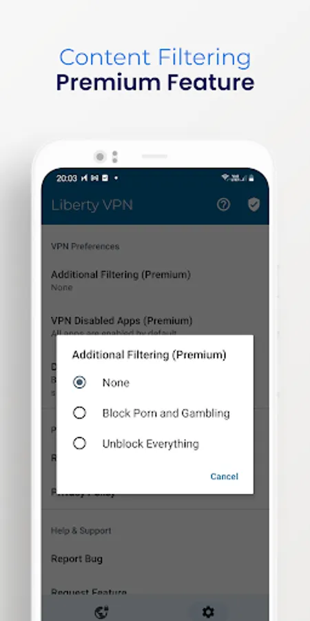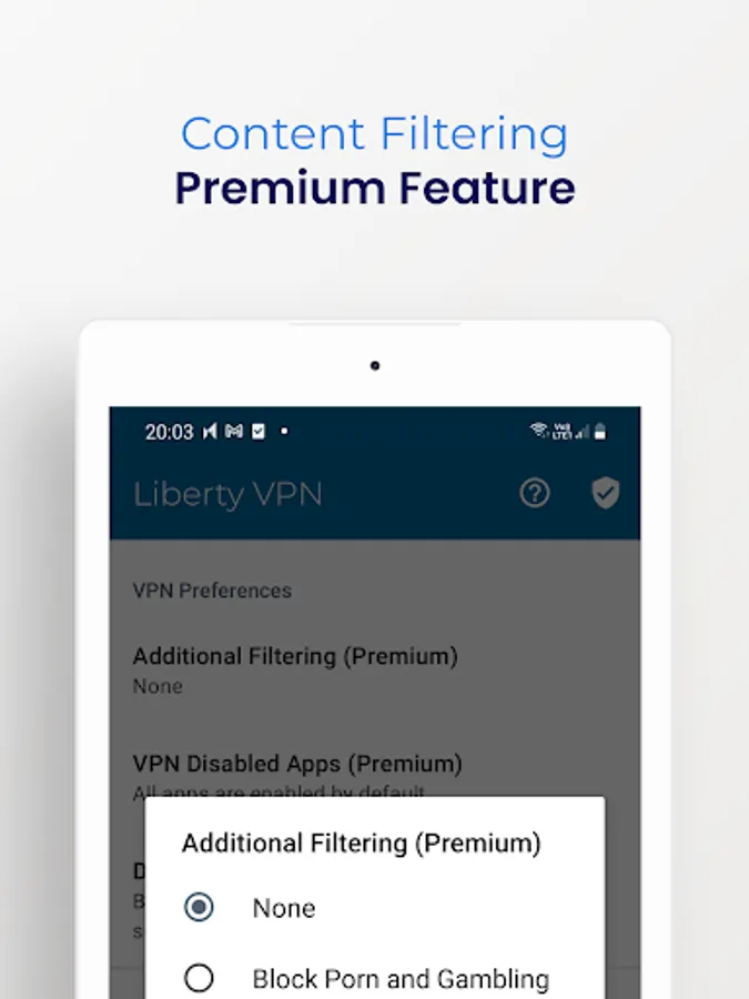 Protect your Android device from the latest security threats like malware, phishing, and crypto mining with Liberty VPN. The additional filter setting's "Family Mode" option offers a safe browsing environment for your loved ones.