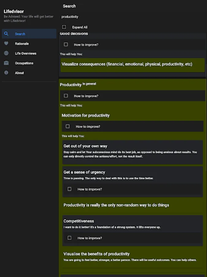 Just write down Your problem or wish in life, and the app gives You organized hints.