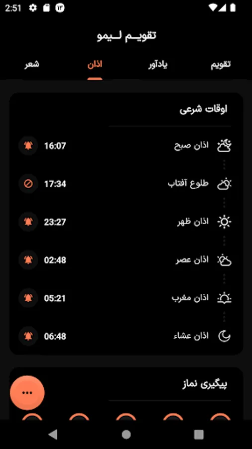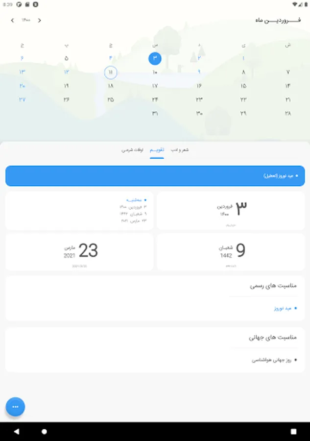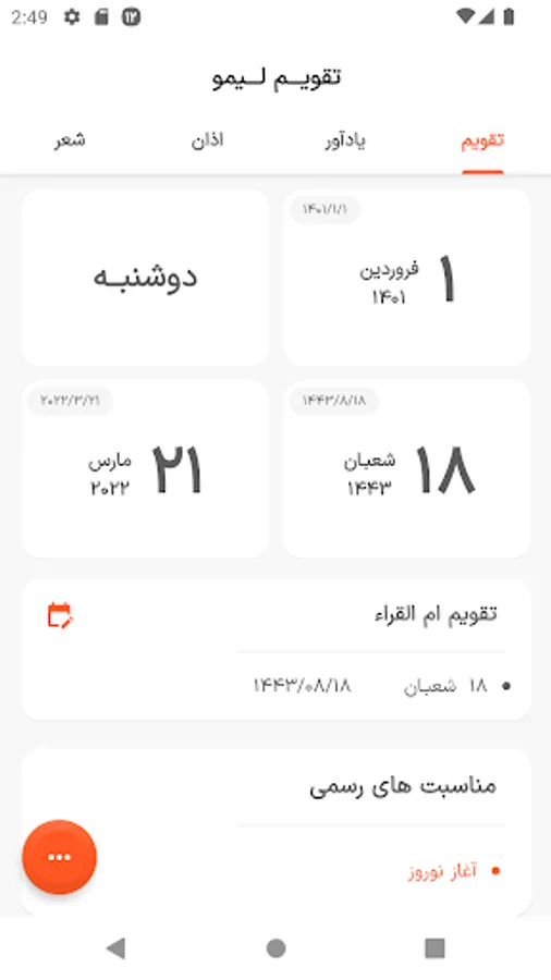 Limo 1402 calendar software with all occasions as well as Qibla face and religious times and official Hijri holidays.
