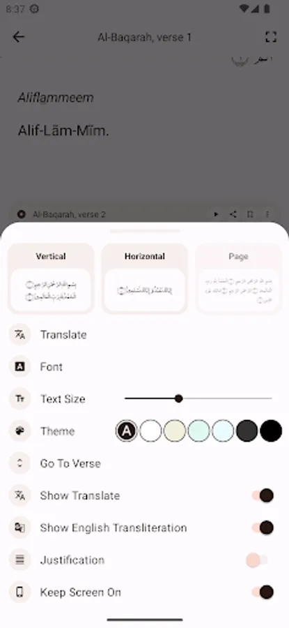 - Recitation of the Quran from more than 50 different audio reciters