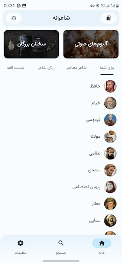 A complete collection of Persian poems has been added to the app from the Ganjur site, and you have complete access to Persian poems, and you can download the poems of each poet separately and use them offline. Also, in addition to poets' books, you can access the poet's biography, profile, place of residence, and pictures.