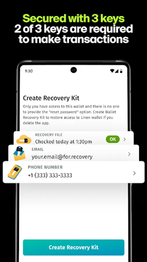 Most crypto wallets are secured with just one key. Linen Wallet is protected with three keys, and two of those three are required to access your wallet. You lose one? You can still access your wallet. Someone steals one? They still can't access it. This is what makes Linen unique.