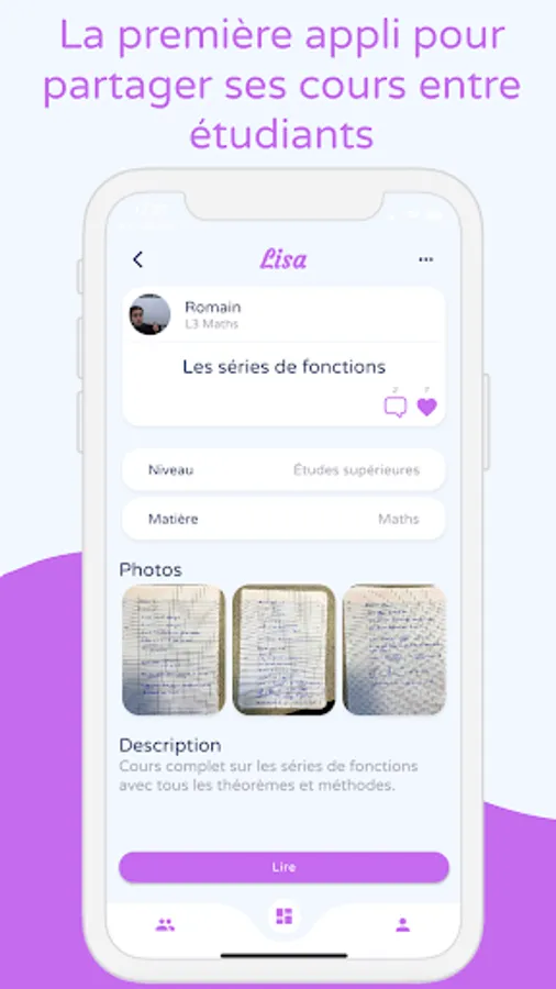Whether you like to share your beautiful lecture notes, whether you're a teacher who wants to share lessons with his students, or a student looking for information on a topic, anything is possible on Lisa.