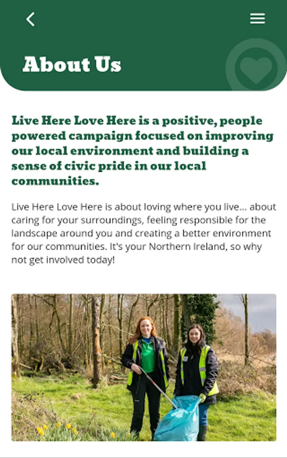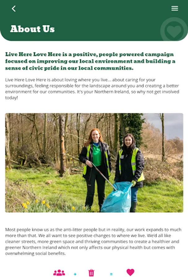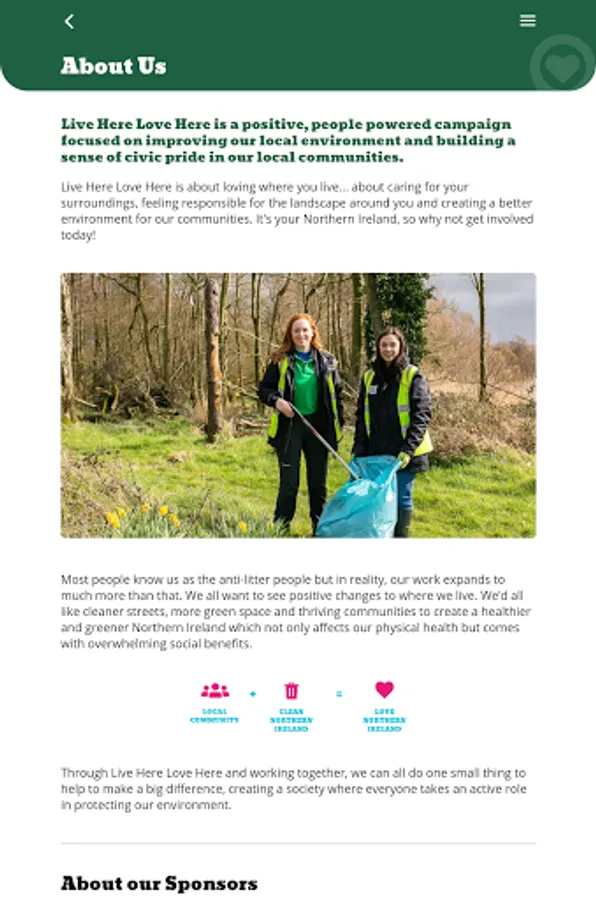 Live Here Love Here is about loving where you live... about caring for your surroundings, feeling responsible for the landscape around you and creating a better environment for our communities. It's your Northern Ireland, so why not get involved today!