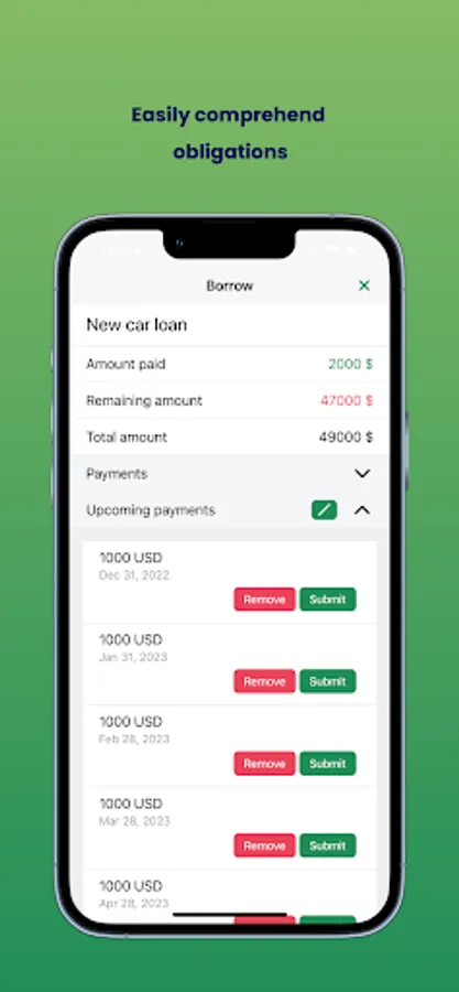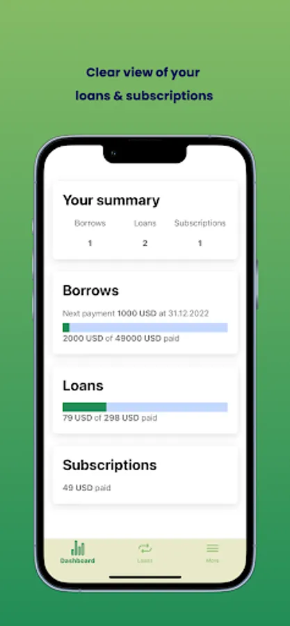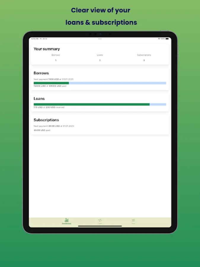 Loanly is a free of charge application that helps you manage the flow of your monay that you borrowed, lent or allocated in some subscriptions (eg. Internet, Cable etc.) and it follows the principle "simple, but useful".