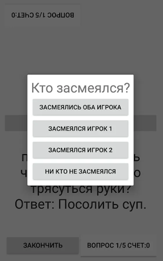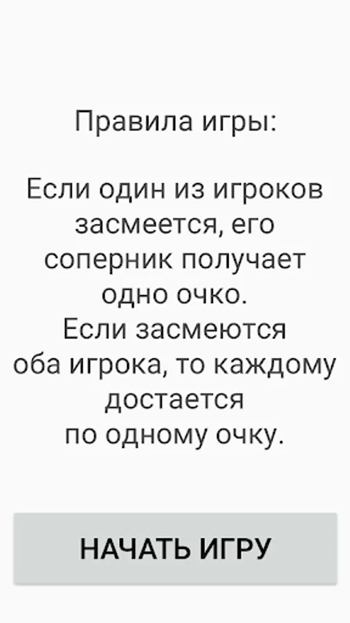 The game is designed for two people. The goal of the game, a joke so that your opponent laughed, then you get 1 point. If both players laughed, then one gets 1 point. Wins the player who scored the most points. If you want your joke has been added to the game, write it in the comments to the game.