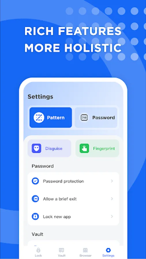 There are two camouflage functions, which can disguise the APP icon and disguise the unlock page, making the app lock more secure and the protected application more natural.