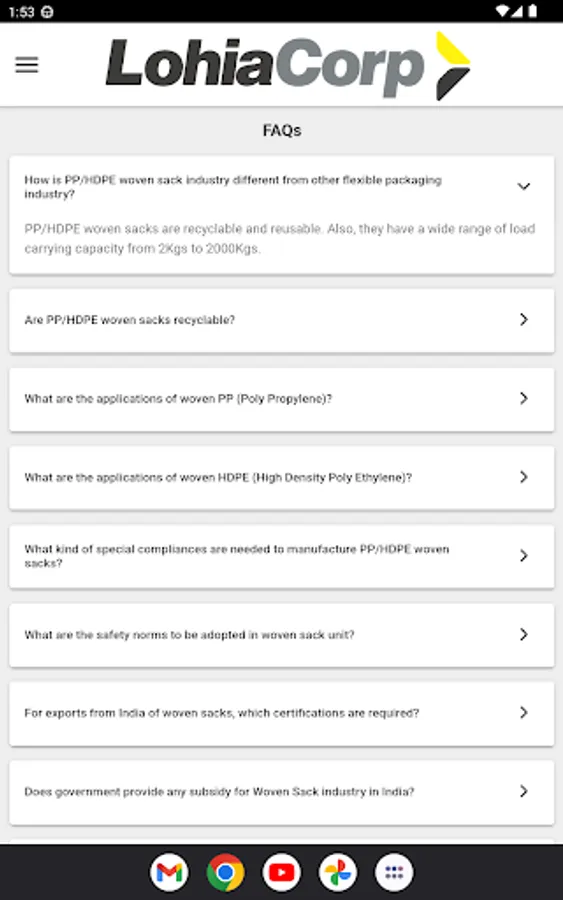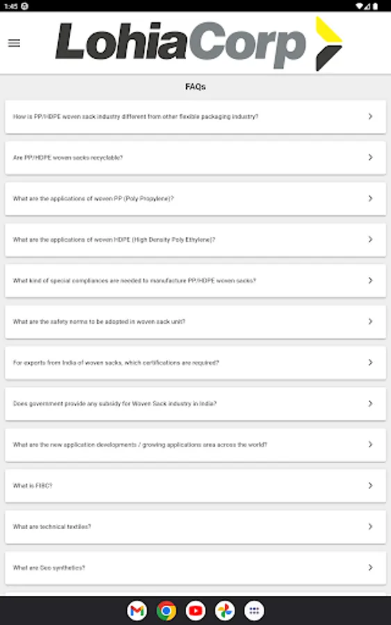 Access information on the entire range of products offered by Lohia Corp.