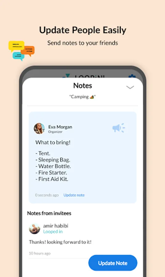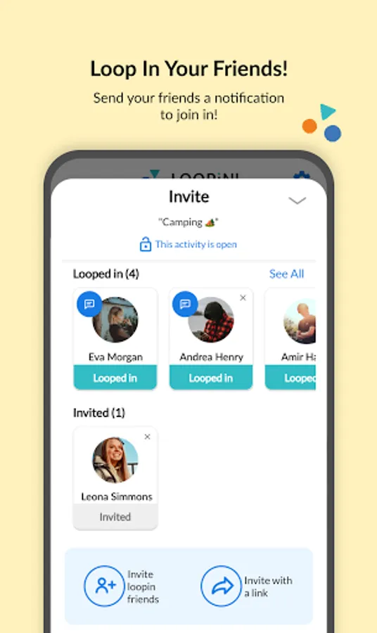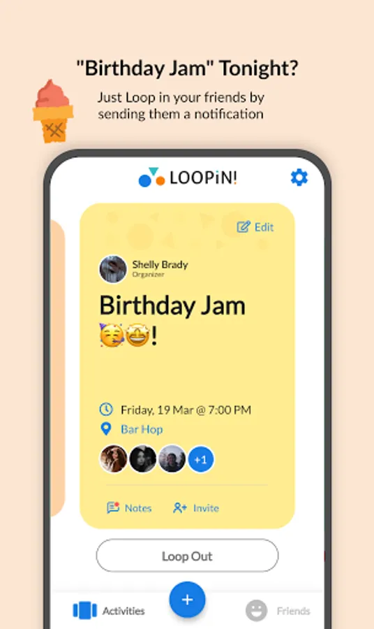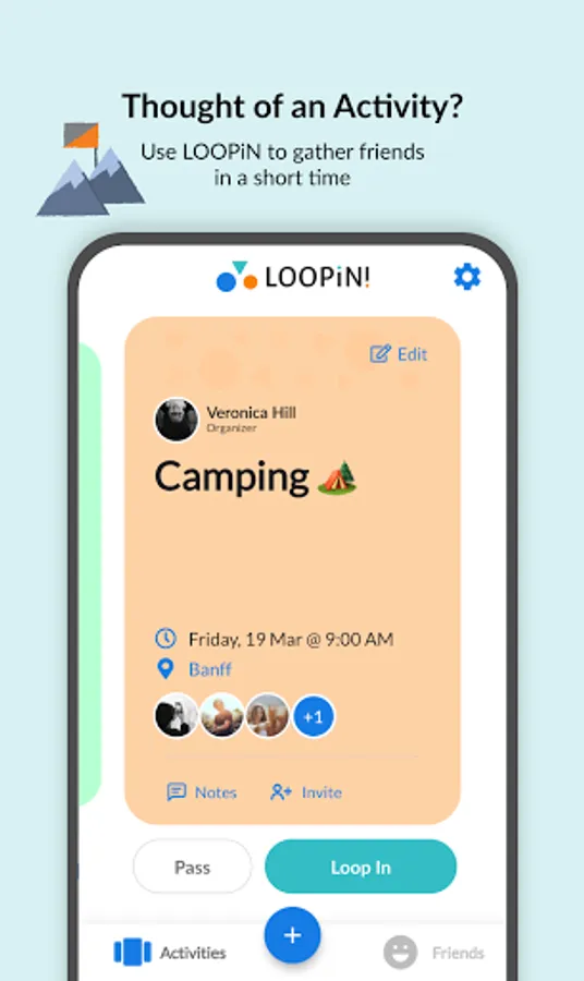 Use LOOPiN to whip up a plan in no time. With a few taps of a button create an activity and send your friends a notification to loop in and invite others. It's just that simple!