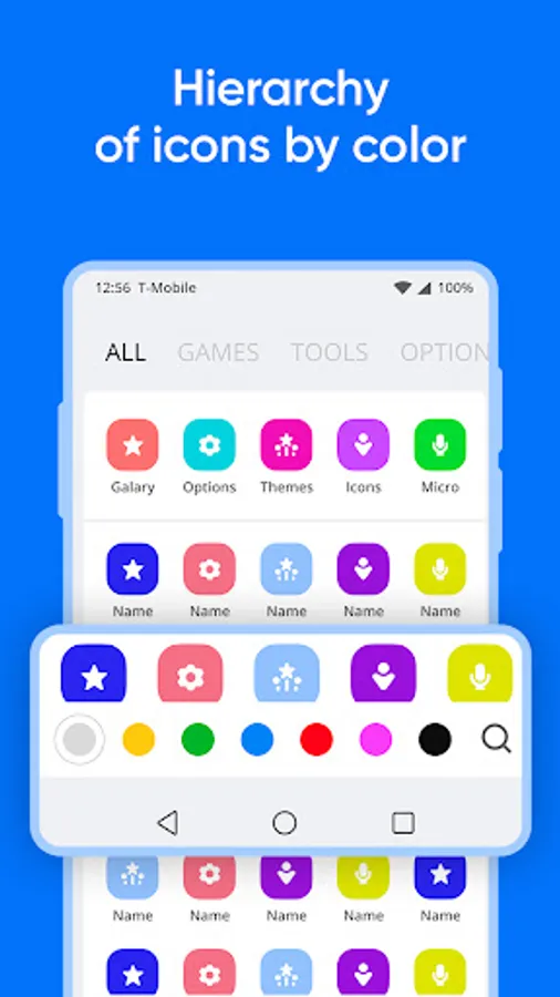 We offer Loor Launcher which will give your smartphone a fresh clean design and keep the performance high. Loor Launcher with an intuitively simple, but at the same time dynamic functional interface, will fit any smartphone size. You don't have to use your second hand to perform the action. The interface is designed for easy one-finger operation.