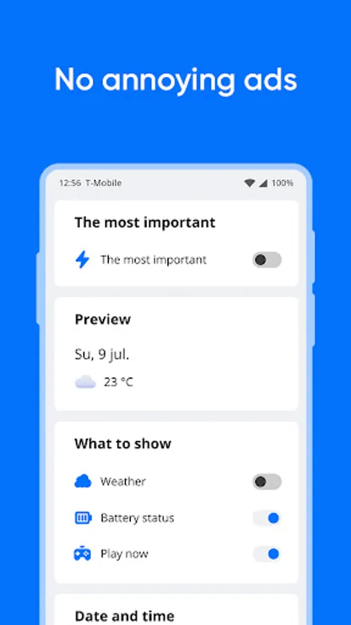 Loor Launcher allows you to change fonts, icon size. Modify the appearance to suit your needs, bright or muted delicate colors to suit the mood for every day, change widgets and turn them off without need. It features lightweight performance, taking up little space in the device's memory, working without delay in response and economical battery consumption.