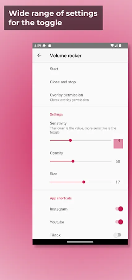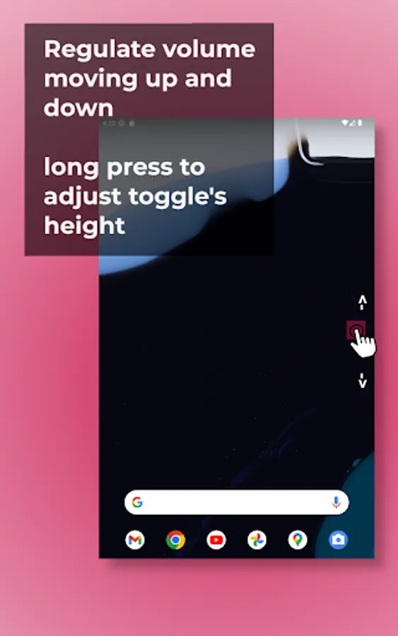 Volume rocker is an app that, with a toggle, allows you to adjust the volume via the screen in any app, including quick links to the most famous apps such as facebook, netflix, whatsapp ..., on which to immediately activate the toggle.