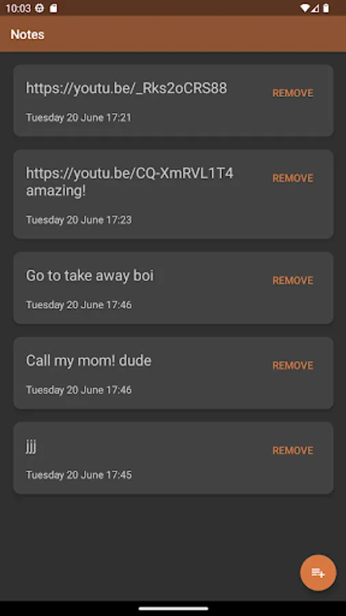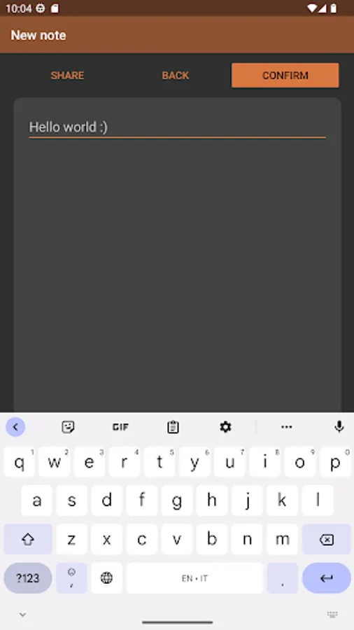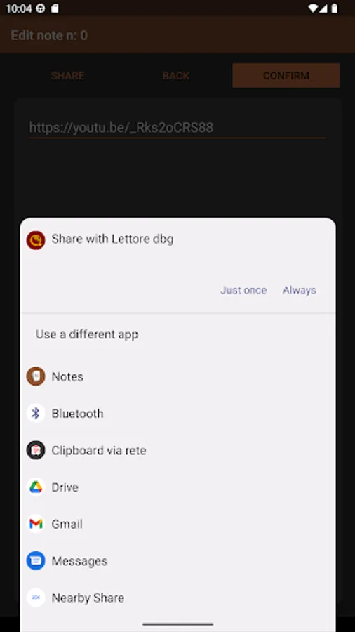 App that allows you to save notes with the possibility of importing text strings into the sharing dialogue