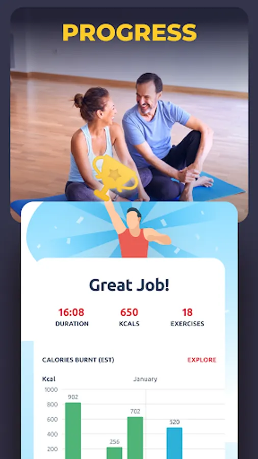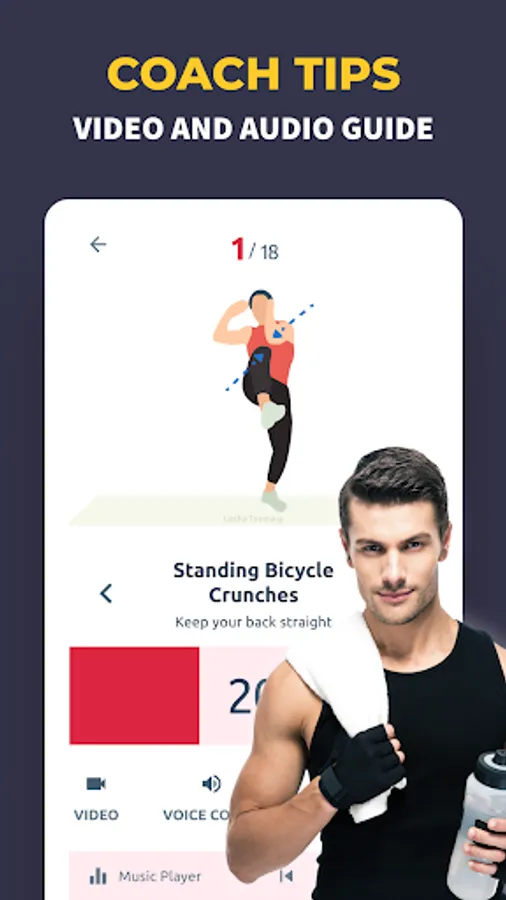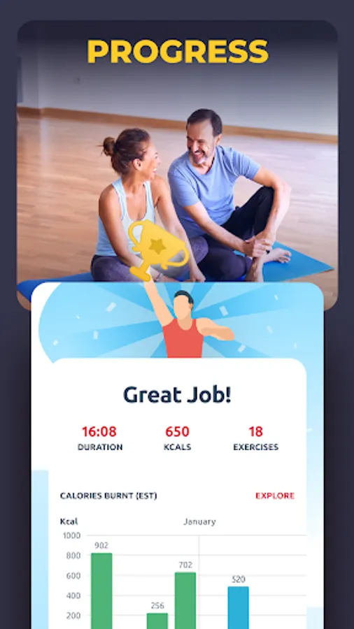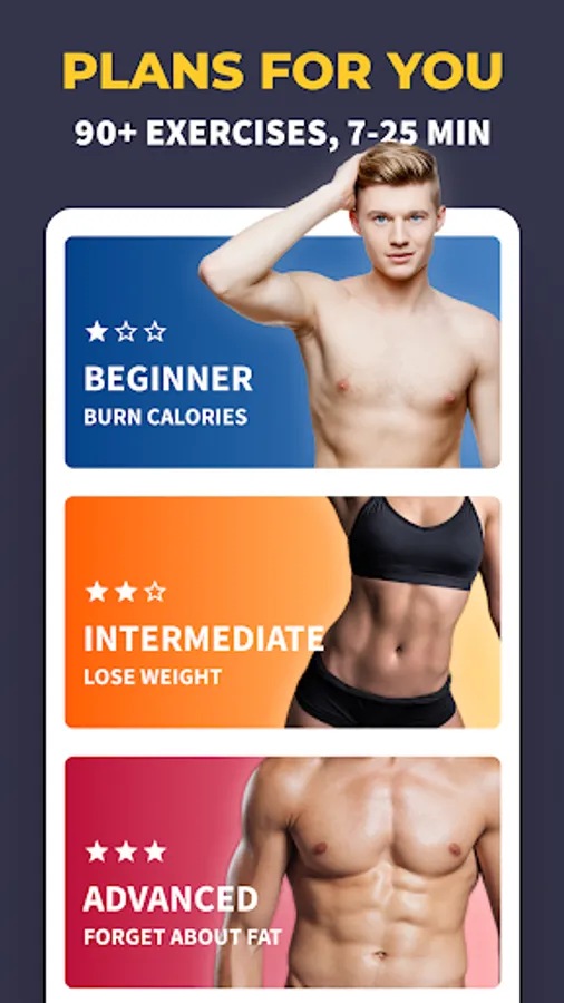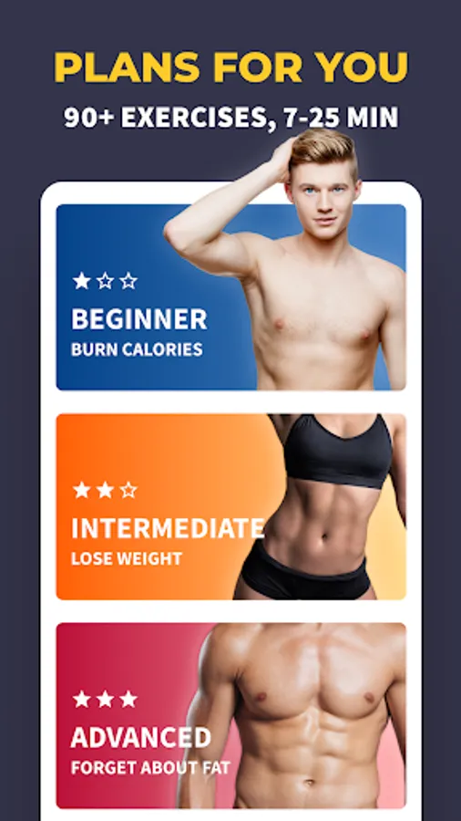You can do all workouts at home, so no equipment, gym or coach are needed. You can easily track burned calories and weight loss on progress page.