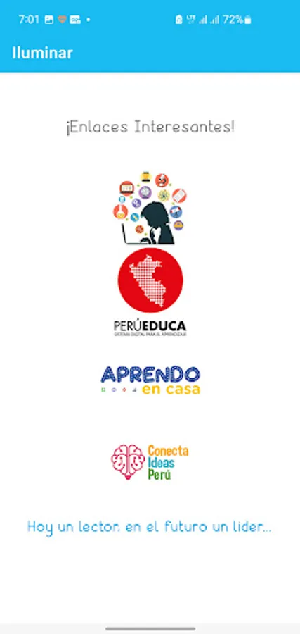 The Illuminar APP is a digital application, which was created with the purpose of having a repository of materials that teachers send from the drive of a corporate account, so that students prepare together with their families and arrive ready to develop digital meetings. in speech booths in the classroom.