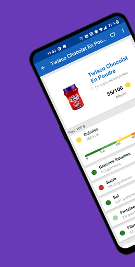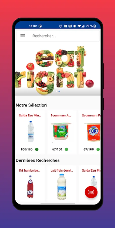 The application indicates to you via a very simple color code the impact of the product on your health: excellent, average, mediocre or bad